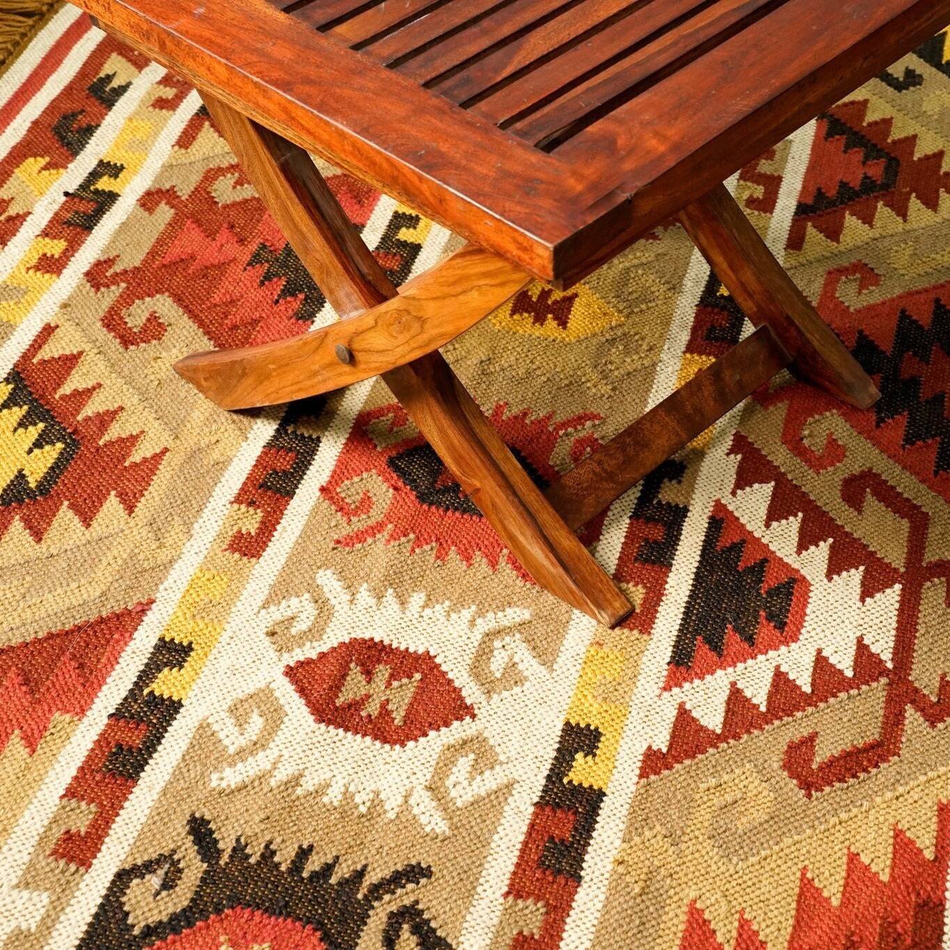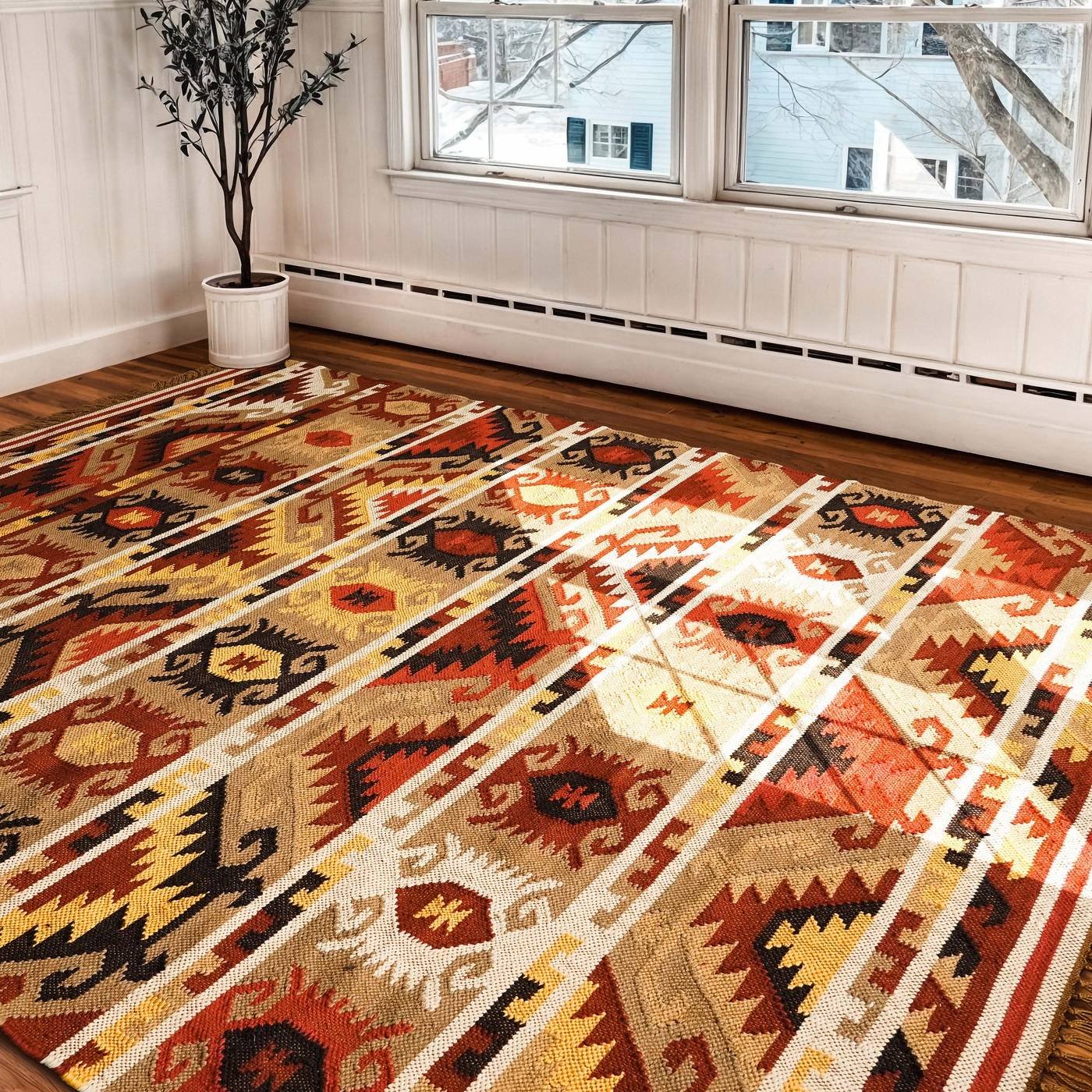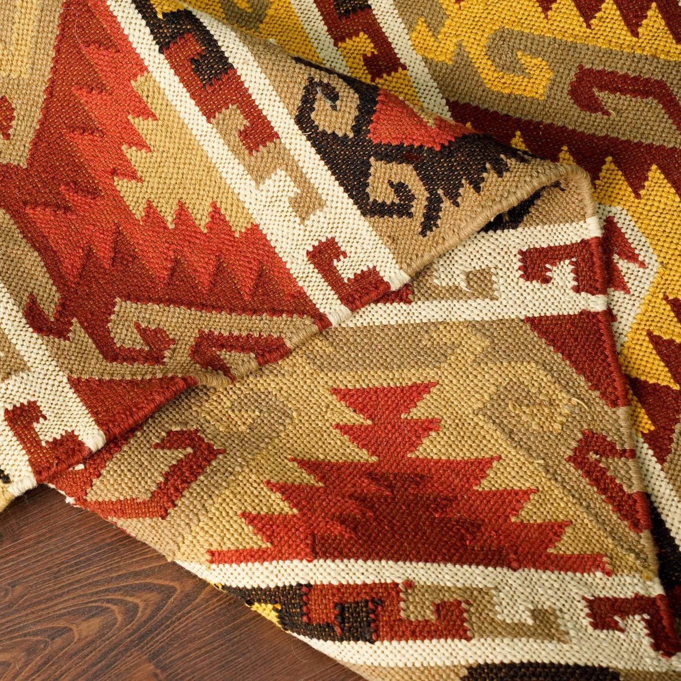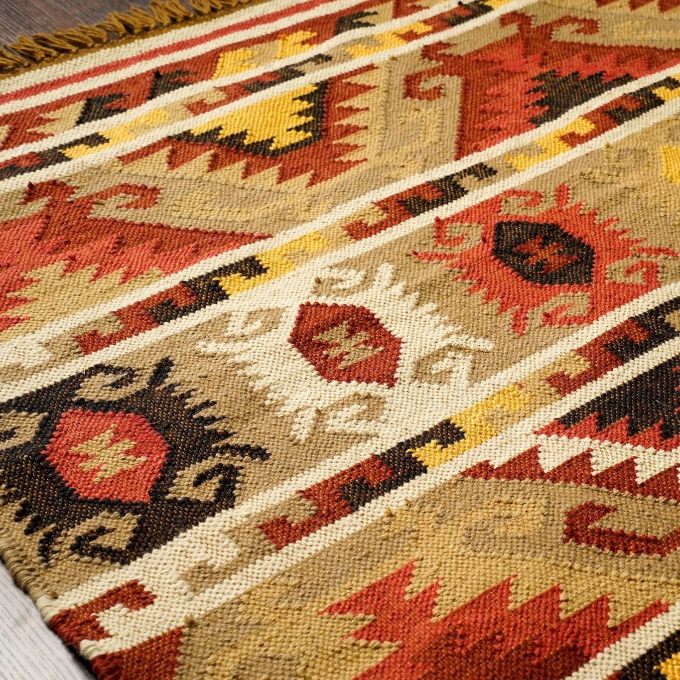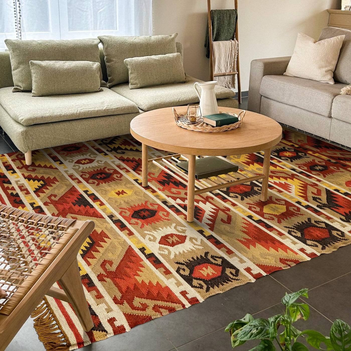 Podnieś swoją przestrzeń dzięki ekologicznemu urokowi tego kilimu z wełny i juty w stylu Navajo