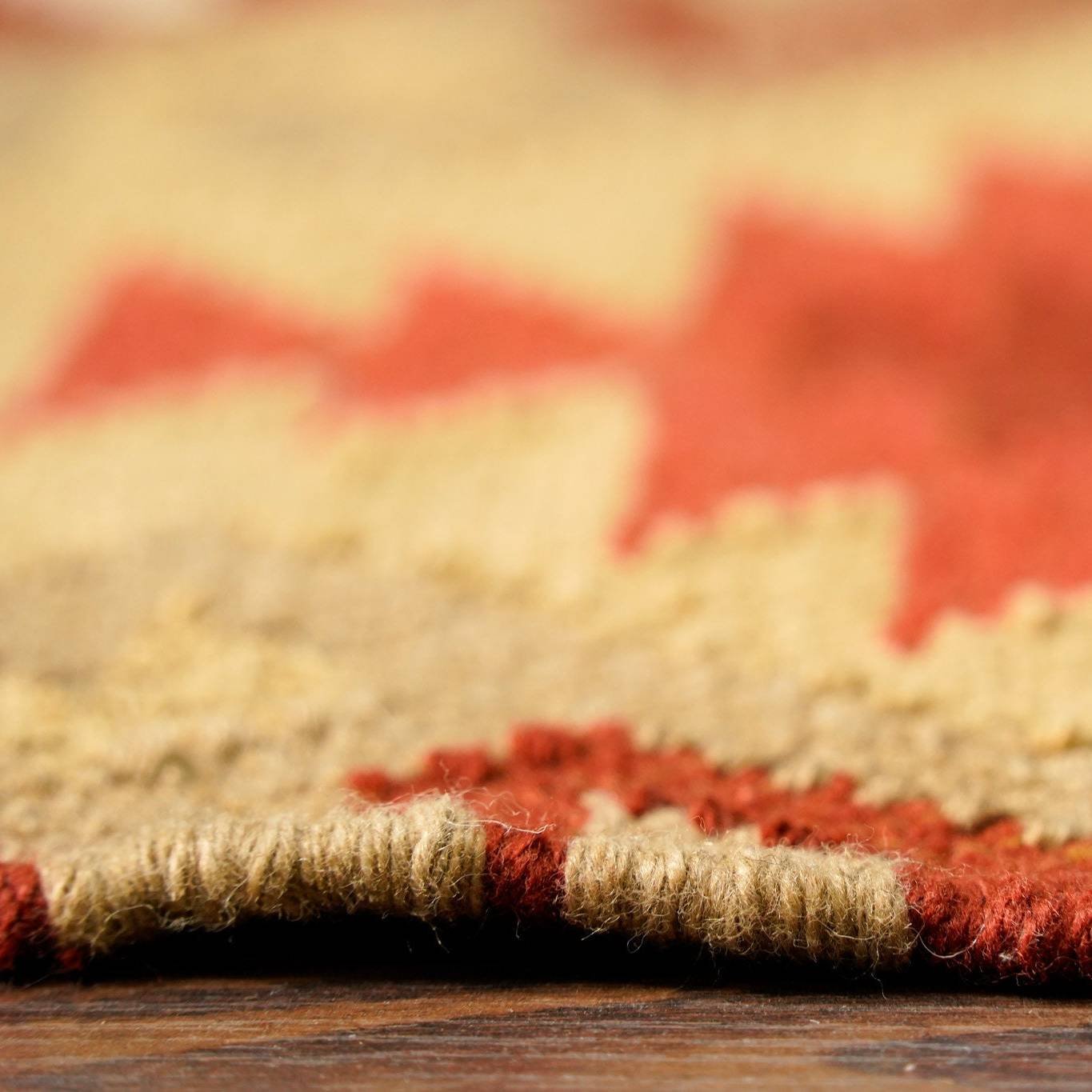 Przekształć swój dom w sanktuarium stylu i zrównoważonego rozwoju dzięki temu wyjątkowemu dywanowi kilim. Ręcznie tkany z dbałością, jego uderzające geometryczne wzory w ciepłych odcieniach ziemi tworzą przytulną atmosferę, idealną do każdego pomieszczenia. Idealny do salonu, sypialni lub przedpokoju, ten wszechstronny dywan dodaje odrobinę antycznej elegancji, a jednocześnie jest ekologiczny.