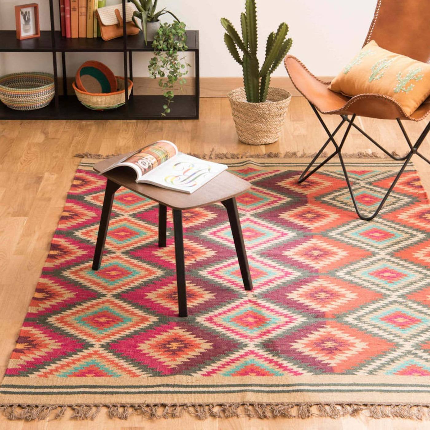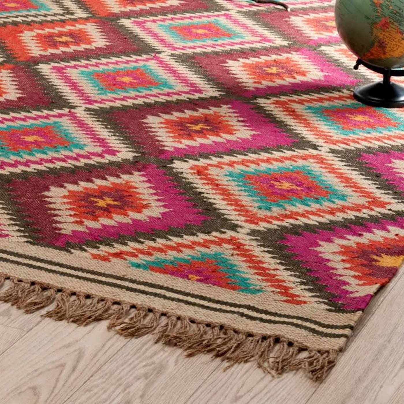 Odmień swoją przestrzeń dzięki żywemu urokowi tego kolorowego dywanu z wełny diamentowej i juty